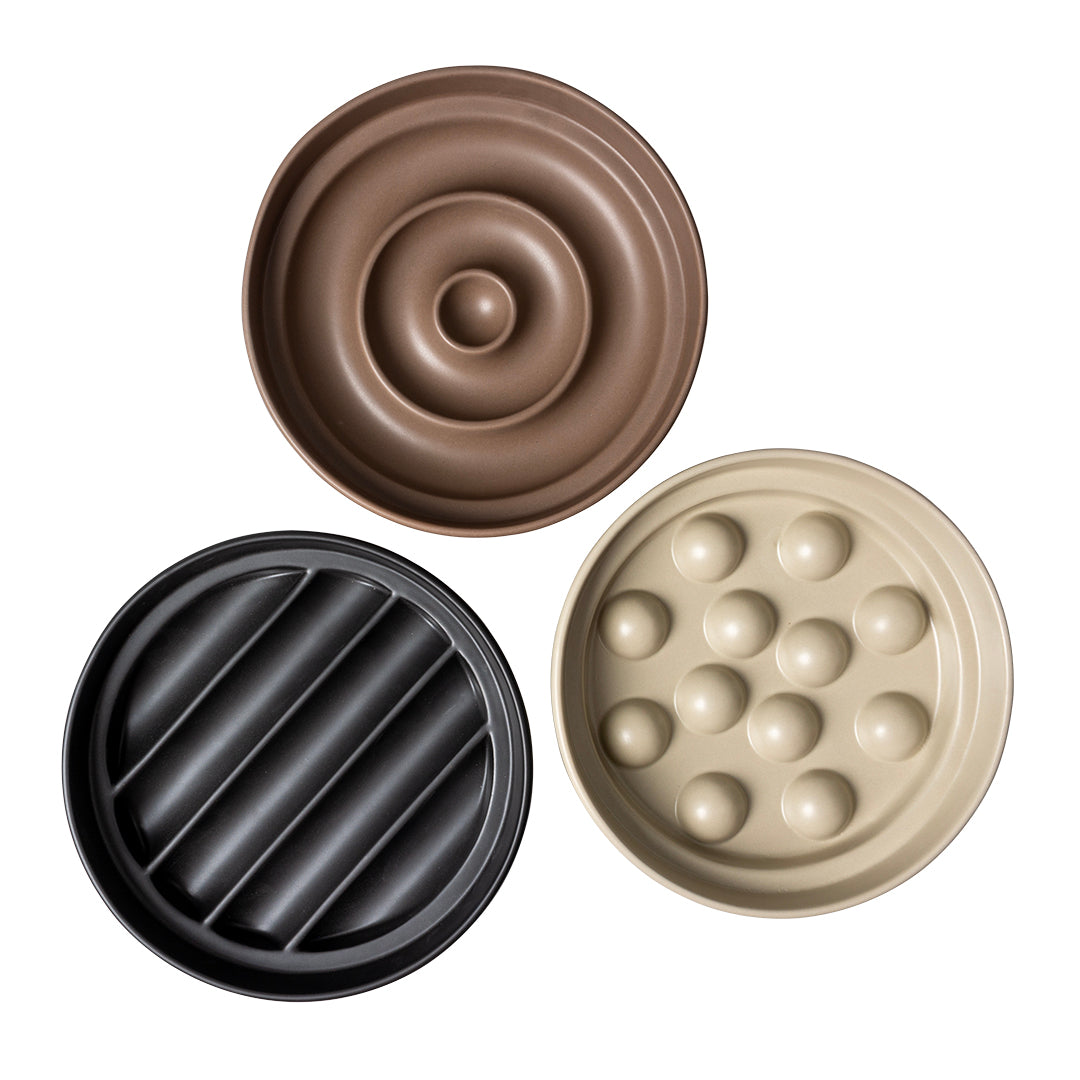 De prachtige slow down feeders SUE van D&D Home | I LOVE Happy Cats zijn ontworpen in samenwerking met kattengedragstherapeut Anneleen Bru. SUE is een prachtige slow down voedselkom met hindernissen in drie vormen, namelijk 'druppel', 'stip' en 'golf'.